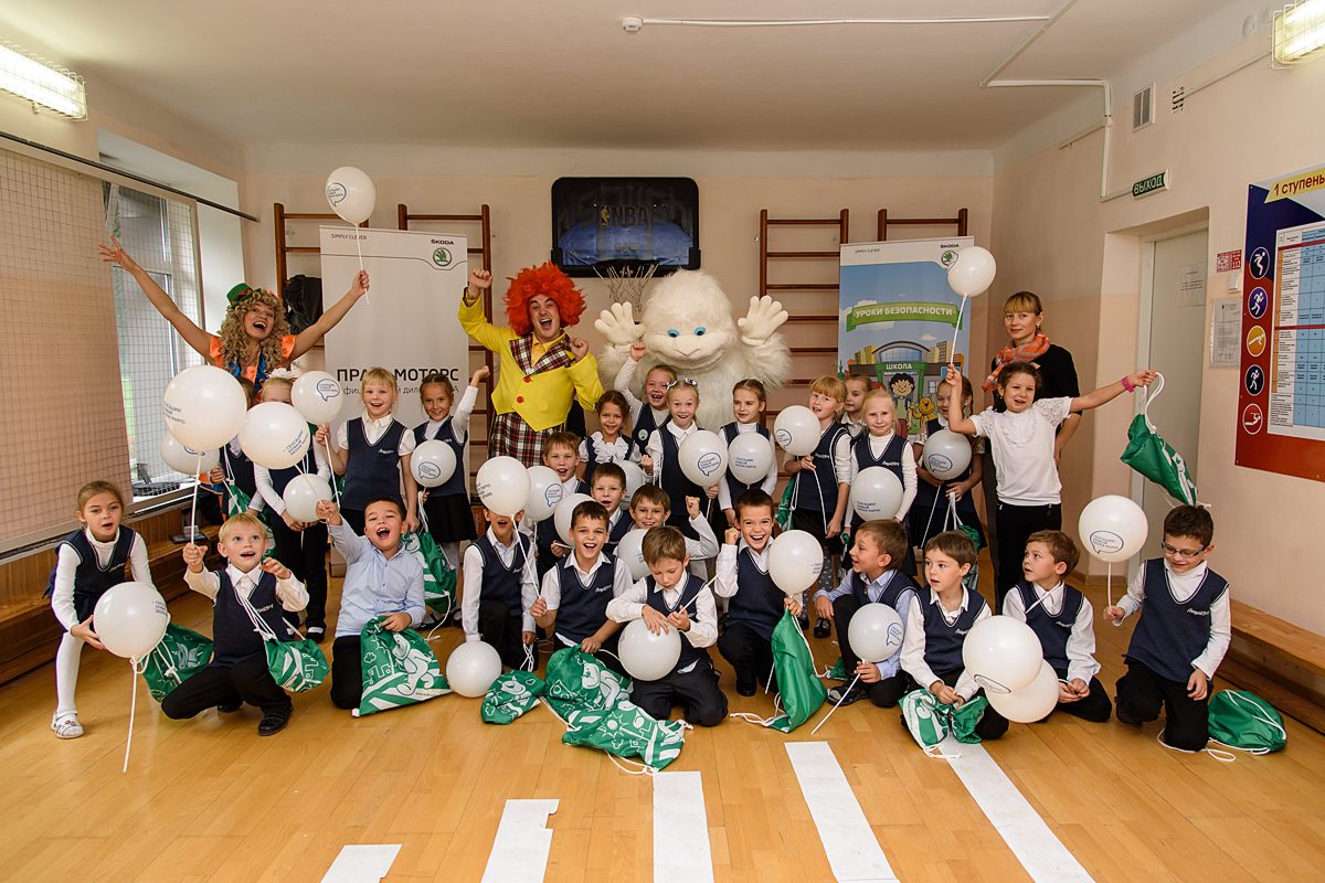 Особенность подхода ŠKODA к общению с ребятами — творчество и игра. Вспомнить правила дорожного движения первоклассникам помогают клоуны Тюнечка и Кудрявчик и снежный человек Йети. Вместе с ними дети изучают, как правильно переходить дорогу и выходить из общественного транспорта, вспоминают знаки дорожного движения и сигналы светофора. По завершению представления все участники получают подарки и сувениры.