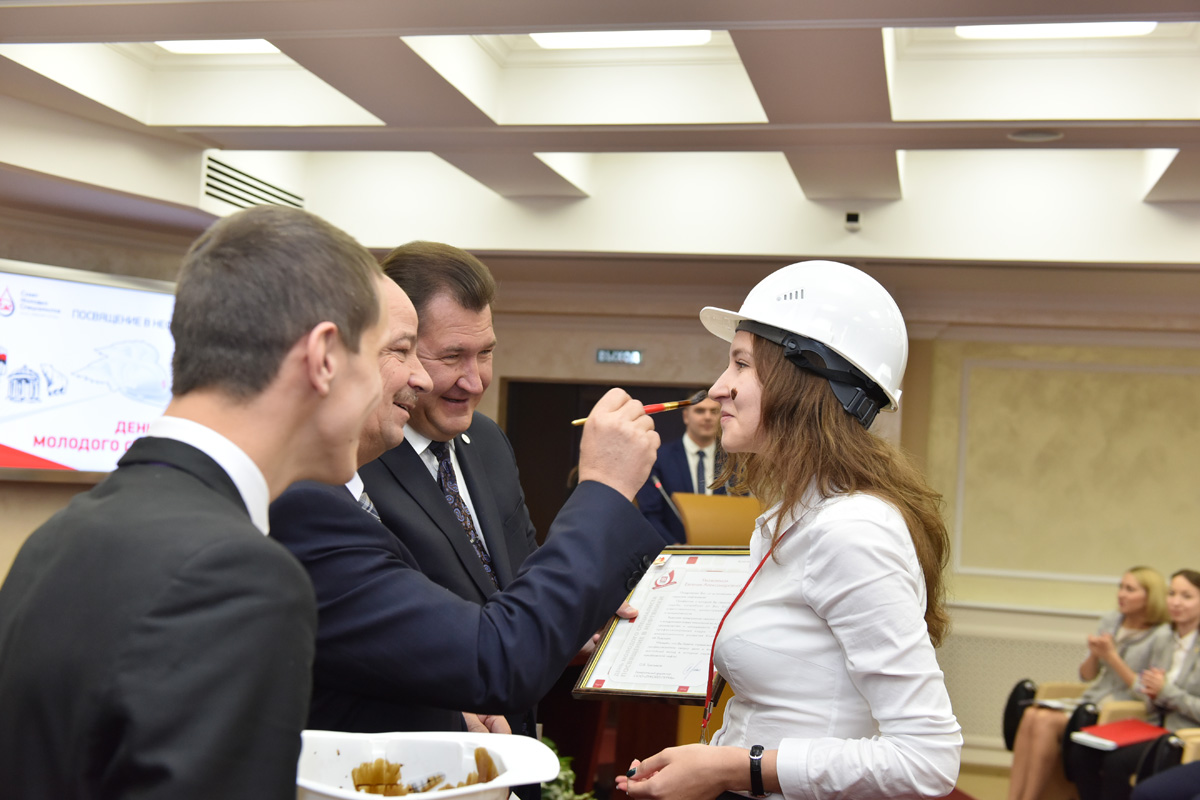57 молодых специалистов «ЛУКОЙЛ-Пермь», которые только начинают свою карьеру на предприятии, прошли посвящение в нефтяники. Выпускники шести российских вузов и нескольких средне-специальных учебных заведений получили наказ генерального директора Олега Третьякова и каску из его рук, а председатель Объединённой профсоюзной организации Валентин Костылев провёл традиционное символичное «помазание» нефтью. Кстати, она совсем свежая, её привезли накануне с Баклановского месторождения.