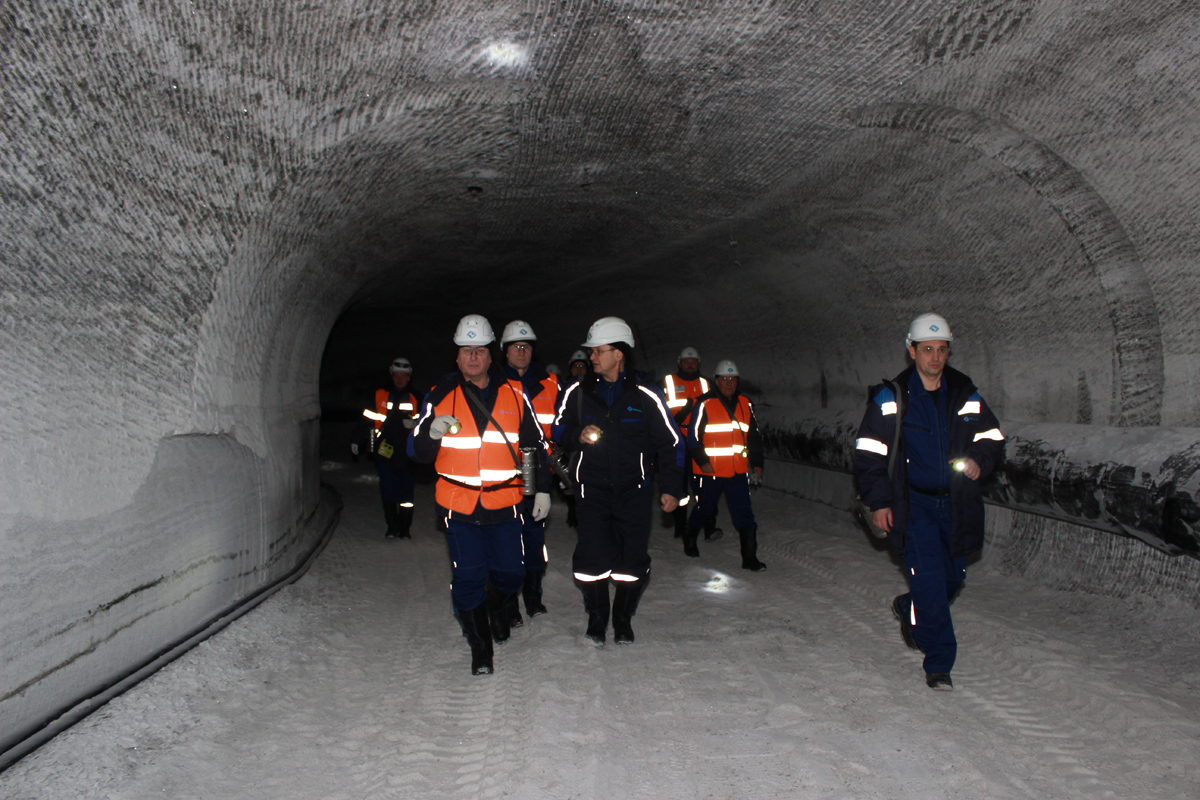 Программа рабочей поездки председателя краевого правительства и глав администраций включала посещение строительной площадки предприятия и спуск в шахту. Гости увидели результат сбойки — горную выработку на пласте каменной соли длиной 285 м. Это расстояние горный комбайн «Урал-20Р» преодолел менее чем за месяц. В процессе осуществления сбойки были задействованы 10 машинистов горно-выемочных машин рудника. При проходке сбойки между клетьевым стволом №2 и скиповым стволом №1 поднято на поверхность около 11 тыс. тонн породы.