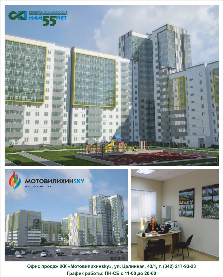 Рады будем видеть вас в отделе продаж ЖК «Мотовилихинsky», который расположен по адресу: ул. Целинная 43/1, тел. 217-93-23. Менеджер проведёт для вас экскурсию и с удовольствием расскажет о проекте — посмотрите сами, как здесь красиво и уютно.