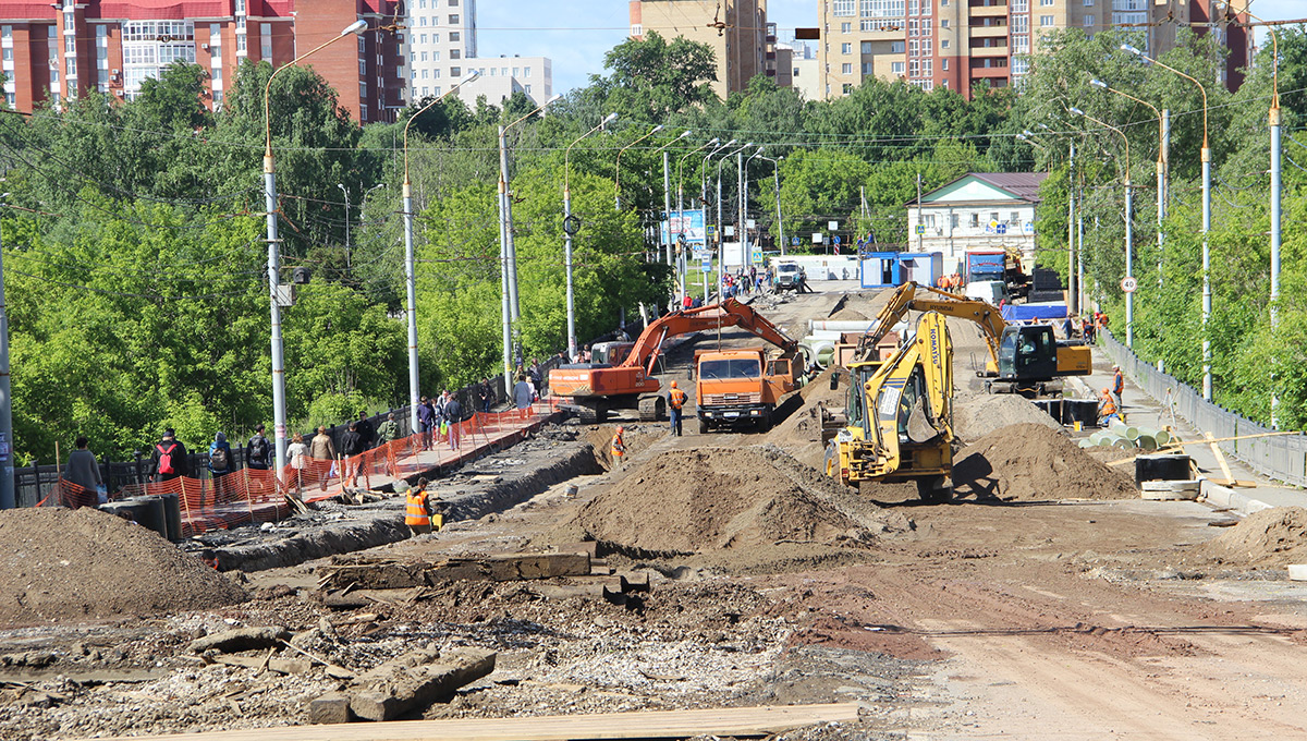 В минувшие выходные, 24 и 25 июня, была полностью разобрана контактная сеть для электротранспорта. Демонтаж щебёночного основания трамвайных путей и бортового камня ещё ведётся.