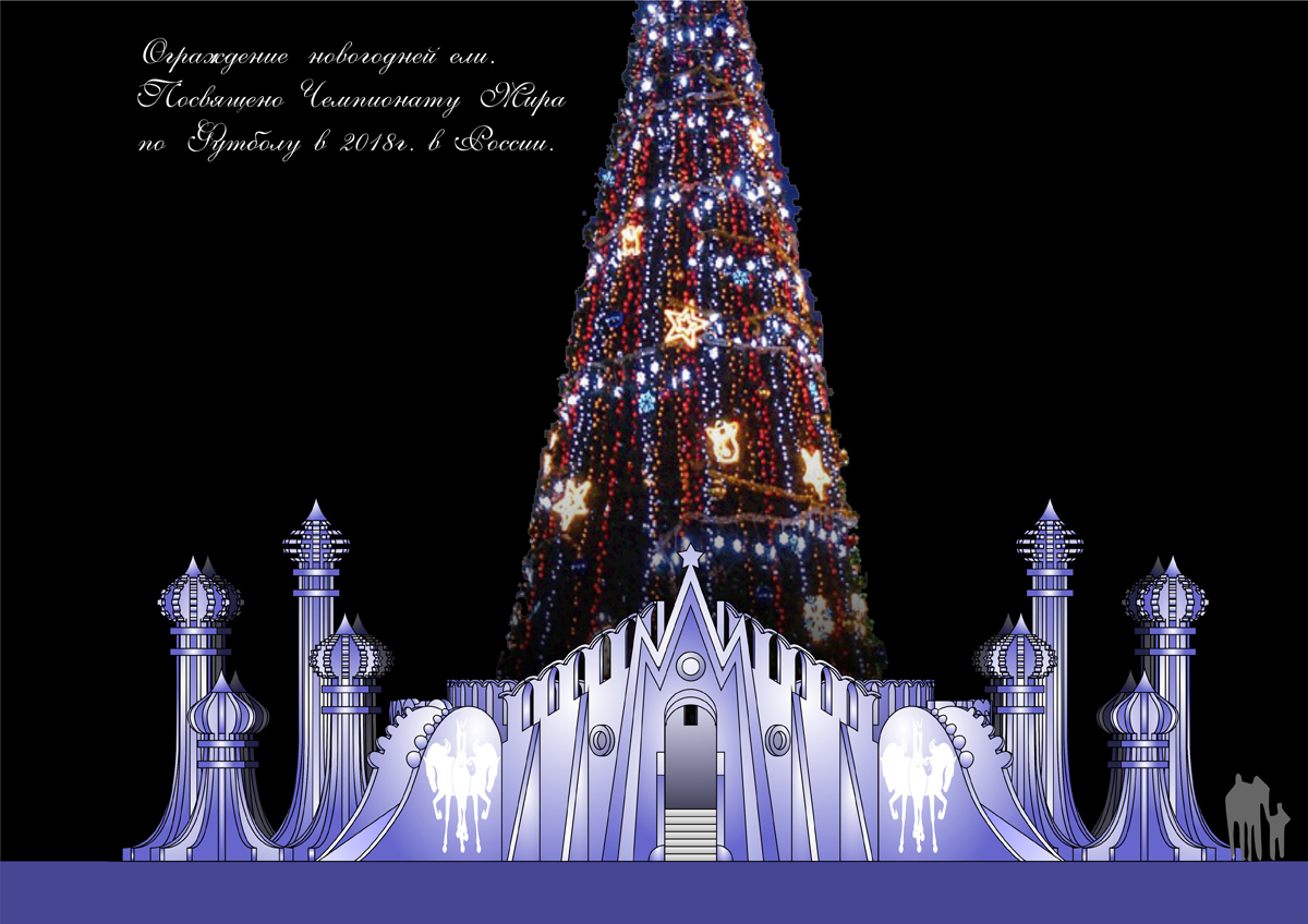 Чемпионату мира 2018 года будет посвящено ограждение ёлки — Всеволод Аверкиев создал фантазию по мотивам русской архитектуры и русских орнаментов; кроме того, ограждение будет включать комплекс горок с четырьмя скатами. Всего в городке будет 22 ската высотой от 60 см до 3 м. Второй год подряд все скаты будут направлены так, чтобы не пересекаться с пешеходным трафиком, кроме того, будет применена современная система торможения с помощью резиновых ковриков. В прошлом году, по словам Людмилы Гаджиевой, благодаря этим мерам безопасности в городке не было ни одной серьёзной травмы.