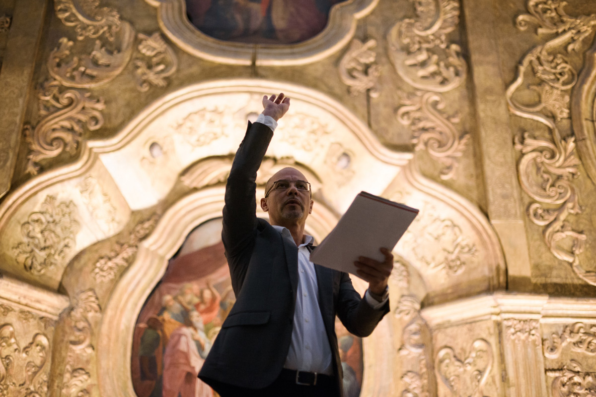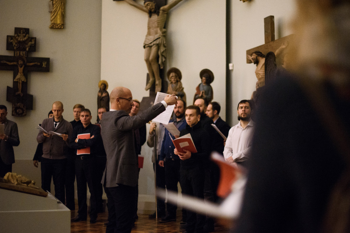 Что именно устроили, надо ещё обсуждать: это было нечто среднее между экскурсией, концертом и хэппенингом. Короче, полная энигма! Формат концертов-загадок, столь любимый Теодором Курентзисом и его соратниками, получил решительное продолжение: если на обычный «концерт-энигму» зрители идут, не зная, какие произведения будут исполняться, но на сей раз шли, вообще не зная, на что! Впрочем, при этом совсем не рисковали: когда за дело берутся такие выдумщики, как заведующий отделом западноевропейского искусства художественной галереи Игорь Мартынов и главный хормейстер Пермского театра оперы и балета Виталий Полонский, плохо быть не может.