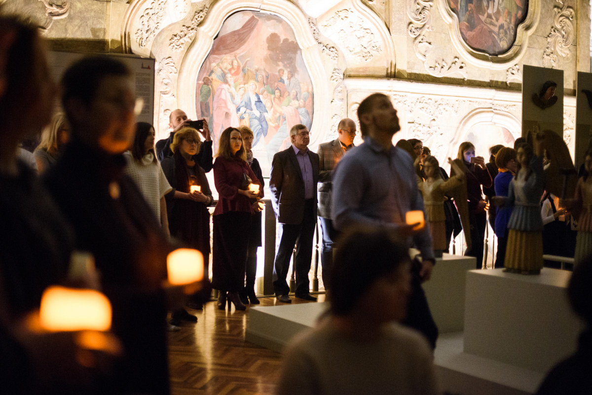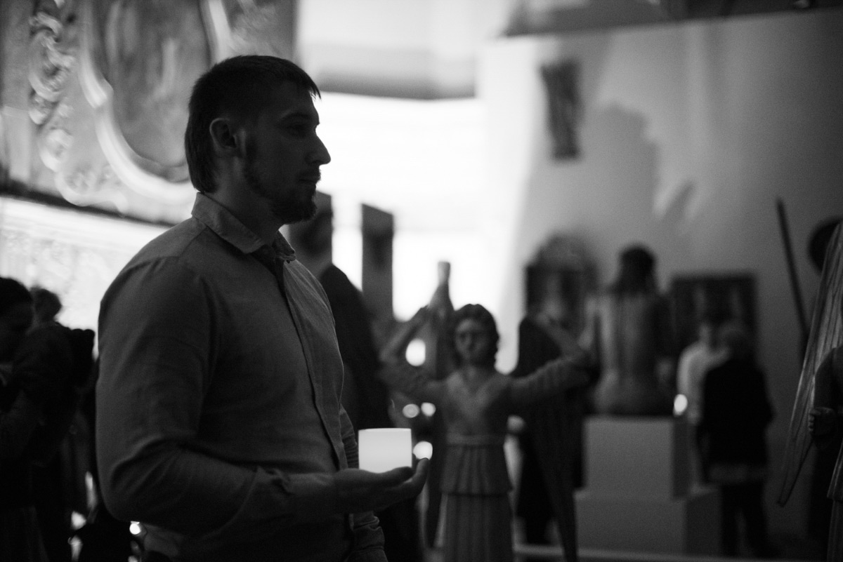 Все эти рассказы строились на знакомстве с произведениями искусства, и Игорь Мартынов очень уместно обращал внимание на значащие, «говорящие» их детали. Даже если гости события уже были знакомы с экспозициями, они словно заново их увидели. Всё это происходило в атмосфере, близкой к церковной: в полутьме, с вовремя вспыхивающими и гаснущими светильниками над теми картинами и скульптурами, о которых шла речь, а перед тем, как пройти в зал Пермской деревянной скульптуры, где концерт завершился, гости получили электрические свечи, которые держали в руках, поднимаясь по лестнице.