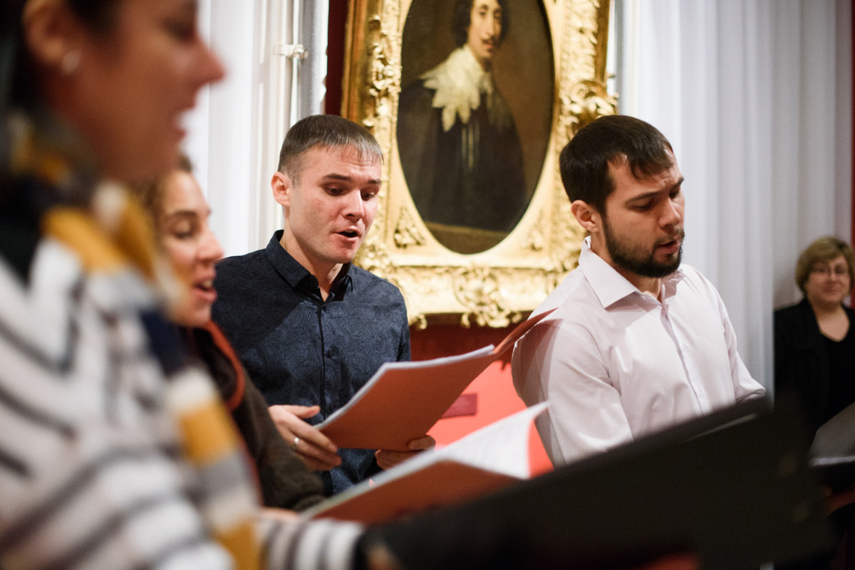 Хор MusicAeterna звучал чуть вдалеке, но где-то рядом. Начали с хорового концерта Дмитрия Бортнянского «Да воскреснет Бог», затем исполнили Свиридова, канты Петровской эпохи, Танеева, стихиры Ивана Грозного и, разумеется, музыку Николая Дилецкого, имеющего прямое отношение к меценатской деятельности Строгановых. В середине прогулки по залам галереи, когда среди экспонатов преобладали западноевропейские произведения очень светского стиля и назначения, прозвучала старинная европейская музыка для лютни и вокального квартета.