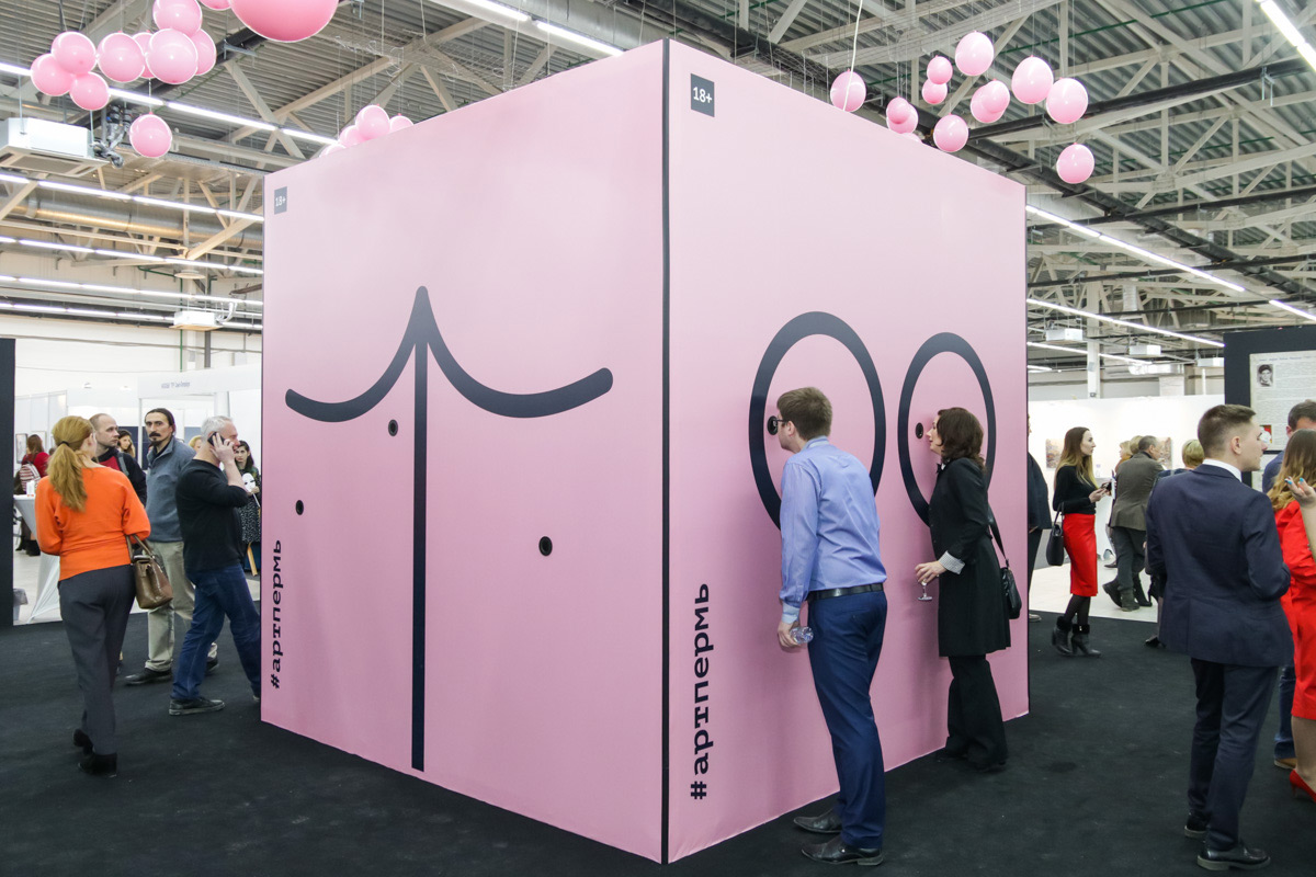 Степень розовости нарастает к центру, где разместился главный проект выставки. «Линия любви» — выставка графики самых «раскрученных» мастеров эротики в «серьёзном» искусстве ХХ века — Пабло Пикассо, Анри Матисса, Эгона Шиле, а также Корнейля и Пауля Вундерлиха. Откровенно говоря, подобная выставка не тянет на центральный проект большого ежегодного салона: мы много раз видали нечто подобное в Центральном выставочном зале, причём не в лучшие его времена. Тиражная графика — вообще щекотливая тема: кто знает, сколько там экземпляров напечатано? А подобные разъездные выставки создаются с откровенно коммерческими целями. Тем не менее некоторые нюансы позволяют отнестись к «Линии любви» снисходительно: большие тексты, посвящённые художникам, несут просветительскую миссию, а сама экспозиция сконструирована остроумно и с приятной самоиронией: наиболее откровенные — 18+ — изображения поданы в формате пип-шоу, их нужно разглядывать через маленькие круглые окошечки в большом розовом кубе.