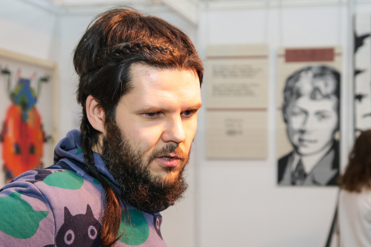Среди лидеров пермского искусства, сотрудничающих в этом году с «Арт-Пермью», оказался и Александр Жунёв. Он не первый раз выставляется на салоне, но впервые — с оригинальными работами, до того были лишь фотографии, что неудивительно для мастера стрит-арта. Александр представил свой проект «Инсектарий» — гигантские портреты насекомых в изобретённой Жунёвым технике пиксель-скотч-арта, а также… своего легендарного Есенина! Популярнейший среди пермяков мурал, снесённый в этом году вместе с недостроенным зданием, на котором он был написан, возродился в фанерном варианте, причём художник дотошно сложил его из дощечек, которых ровно столько, сколько было облицовочных плиток на той части здания, где был портрет поэта.