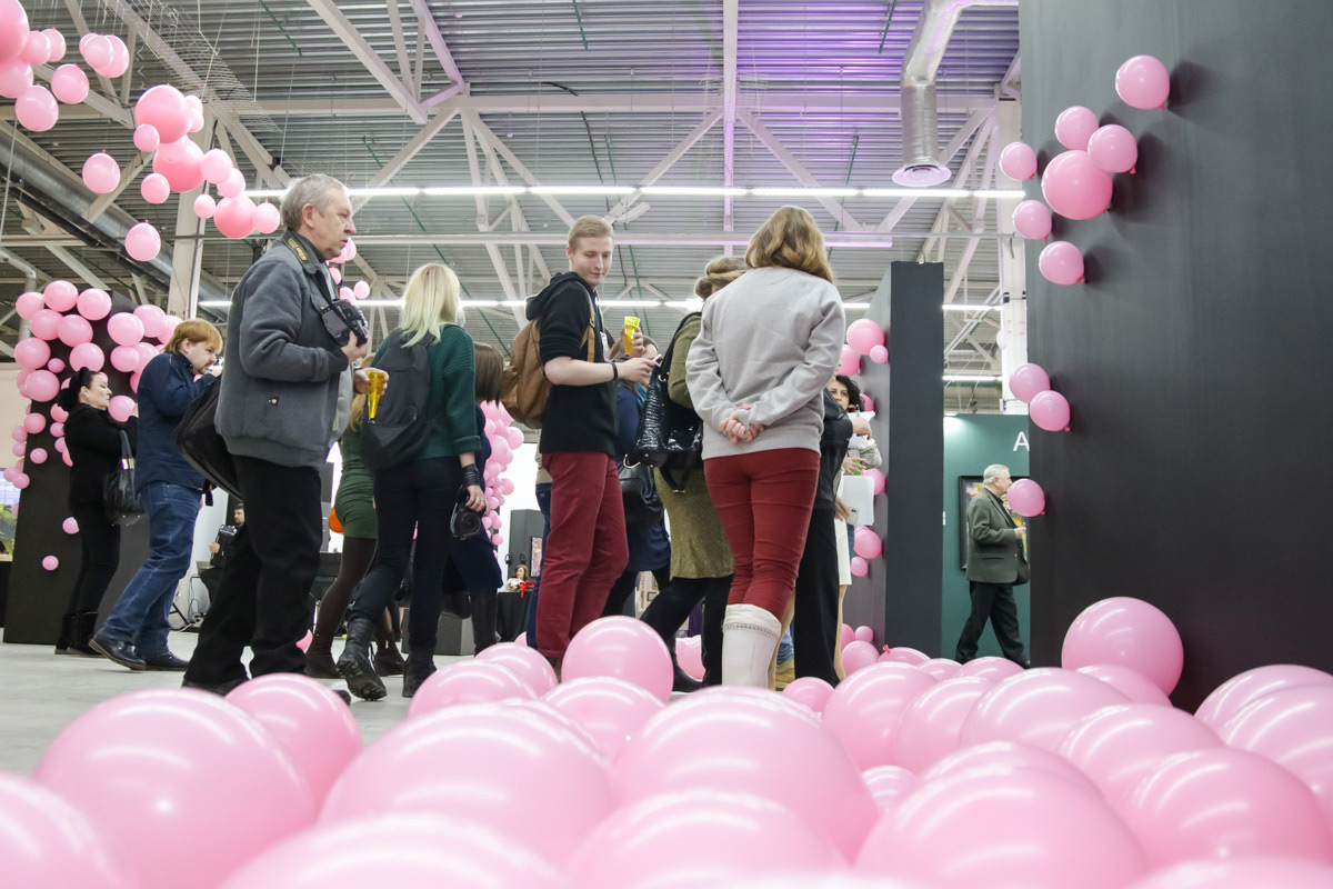 Нынешняя «Арт-Пермь» предложила радоваться жизни, более того — наслаждаться ею. Девиз салона — Art de vivre, «Искусство жизни», и вернисаж, состоявшийся 1 февраля, был выдержан в соответствующем гедонистическо-бонвиванском настроении: сыры от Филиппа Швайцера, пирожные от Бориса Кулинского, торжественное распыление нового аромата от Виолы Новосёловой, выпускницы парфюмерной академии в Грассе, винное казино, ледяная скульптура, посвящённая «Лексусу», официанты, разносившие напитки и закуски в розовых масках игривых фавнов. Вообще, интерьер салона выдержан в розовом цвете такого оттенка, который наводит на мысли об эротике. Дизайнер Василий Логиненко навесил и набросал на ближайшие к входу стенды столько розовых воздушных шариков, что посетители будто окунались в розовую пену.