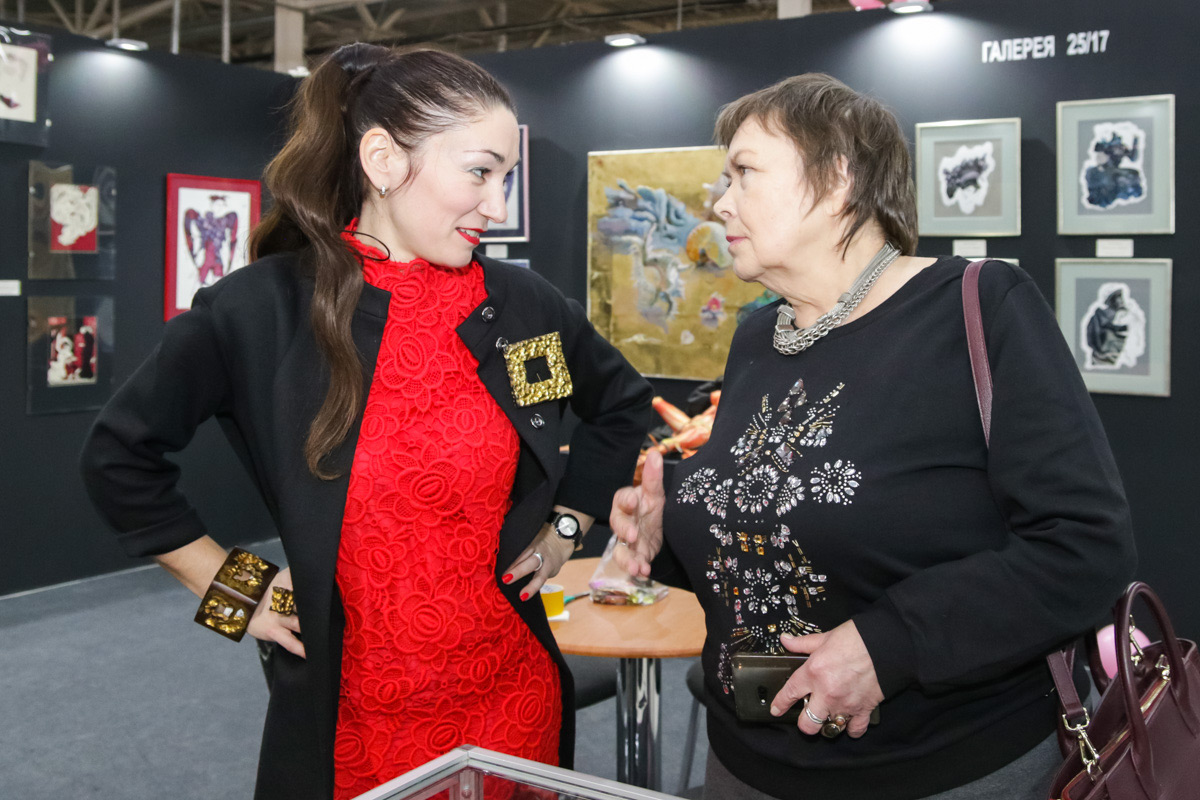 Впервые в работе салона принимает участие галерея частных коллекций «Уникум». Здесь что ни имя — то легенда: Александр Репин, Владимир Немухин, Владимир Наседкин, Анатолий Зверев… Понятно, что купить здесь можно далеко не всё: большинство работ уже находятся в частных коллекциях. Но кое-что всё же можно, тем более что именно здесь, внутри стенда «Уникума», расположились со своими работами прибывшие из Болгарии мастера керамики Инна Рогова и Наталья Корчёмкина.