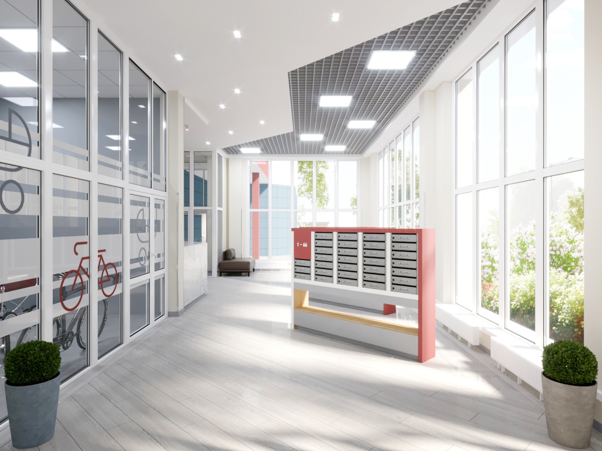 — охраняемая зона для колясок и велосипедов в холле первого этажа;