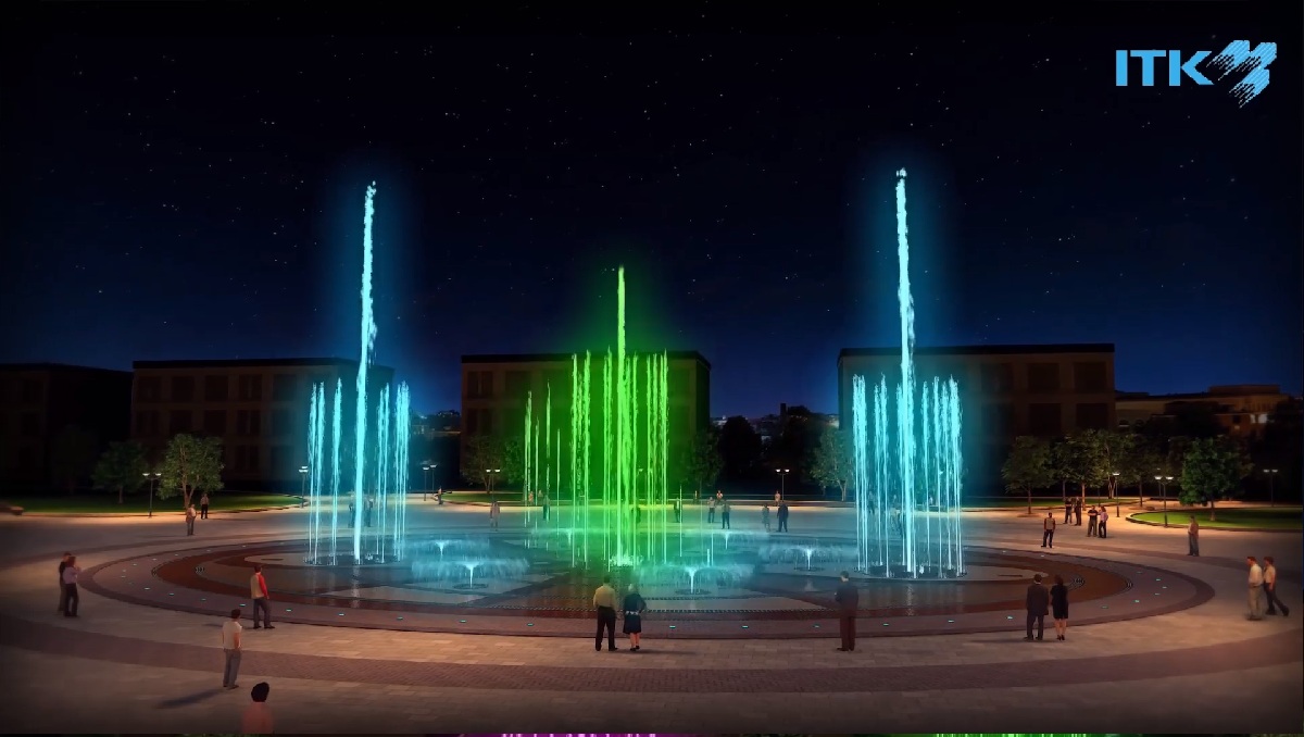 Подрядная организация уже выполнила проектно-изыскательские работы и на этой неделе начала оборудовать основание фонтана. Строительство планируют закончить в течение 2018 года. Площадь нового фонтана составит 40 на 25 м. Предполагается, что он, как и фонтан перед Театром-Театром, будет светомузыкальным.
