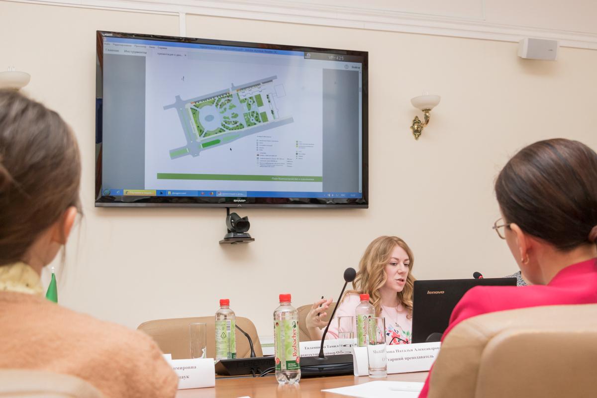 О предстоящих преобразованиях рассказала архитектор-дизайнер ООО «Проектная фирма ОРТА» Тамила Евлампиева. Представитель проектировщика, не останавливаясь подробно на архитектурной составляющей, рассказала об основных зонах посадки растений. По словам госпожи Евлампиевой, на эспланаде рядом со зданием Законодательного собрания планируется высадить яблоню и берёзу, а в центре 68-го квартала — ещё тополь и рябину. Поскольку ключевым выразительным средством проекта является геопластика, представленная искусственными холмами и лужайками, выбор растений для эксплуатируемого газона (на котором можно сидеть) играет особую роль. Тем более, что зимой на этой площадке будет работать ледовый городок, чего капризные растения просто не переживут.