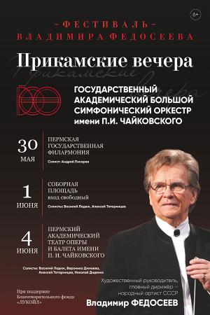 Большим праздником музыки для пермяков станет Фестиваль Владимира Федосеева «Прикамские вечера». В этом году Большой симфонический оркестр имени Чайковского под управлением Владимира Федосеева даст в Перми сразу три концерта с разным репертуаром. 30 мая на сцене Пермской краевой филармонии прозвучат произведения Рахманинова, Скрябина и Римского-Корсакова с участием пианиста Андрея Писарева. Незабываемым подарком будет концерт русской и советской песни, который пройдёт 1 июня на Соборной площади Перми прямо под открытым небом с участием уже знакомых пермскому зрителю баритона Василия Ладюка и тенора Алексея Татаринцева, которые исполнят в первый день лета легендарные песни Тухманова, Пахмутовой, Магомаева и других авторов. Завершится Фестиваль Владимира Федосеева «Прикамские вечера» концертом «Шедевры мировой оперы» 4 июня в Пермском театре оперы и балета с участием звезд мировой оперы Вероники Джиоевой (сопрано), Алексея Татаринцева (тенор), Василия Ладюка (баритон) и Николая Диденко (бас).