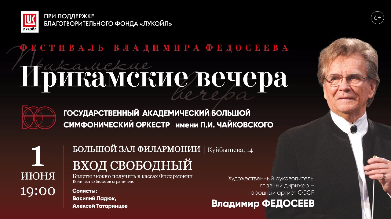 Фестиваль Владимира Федосеева «Прикамские вечера» пройдёт в Перми с 30 мая по 4 июня. Большой симфонический оркестр даст сразу три концерта с разным репертуаром. Помимо концерта 1 июня, 30 мая на сцене Пермской краевой филармонии прозвучат произведения С. Рахманинова, А. Скрябина и Н. Римского-Корсакова с участием пианиста Андрея Писарева. 4 июня в Пермском театре оперы и балета фестиваль «Прикамские вечера» завершится концертом «Шедевры мировой оперы».