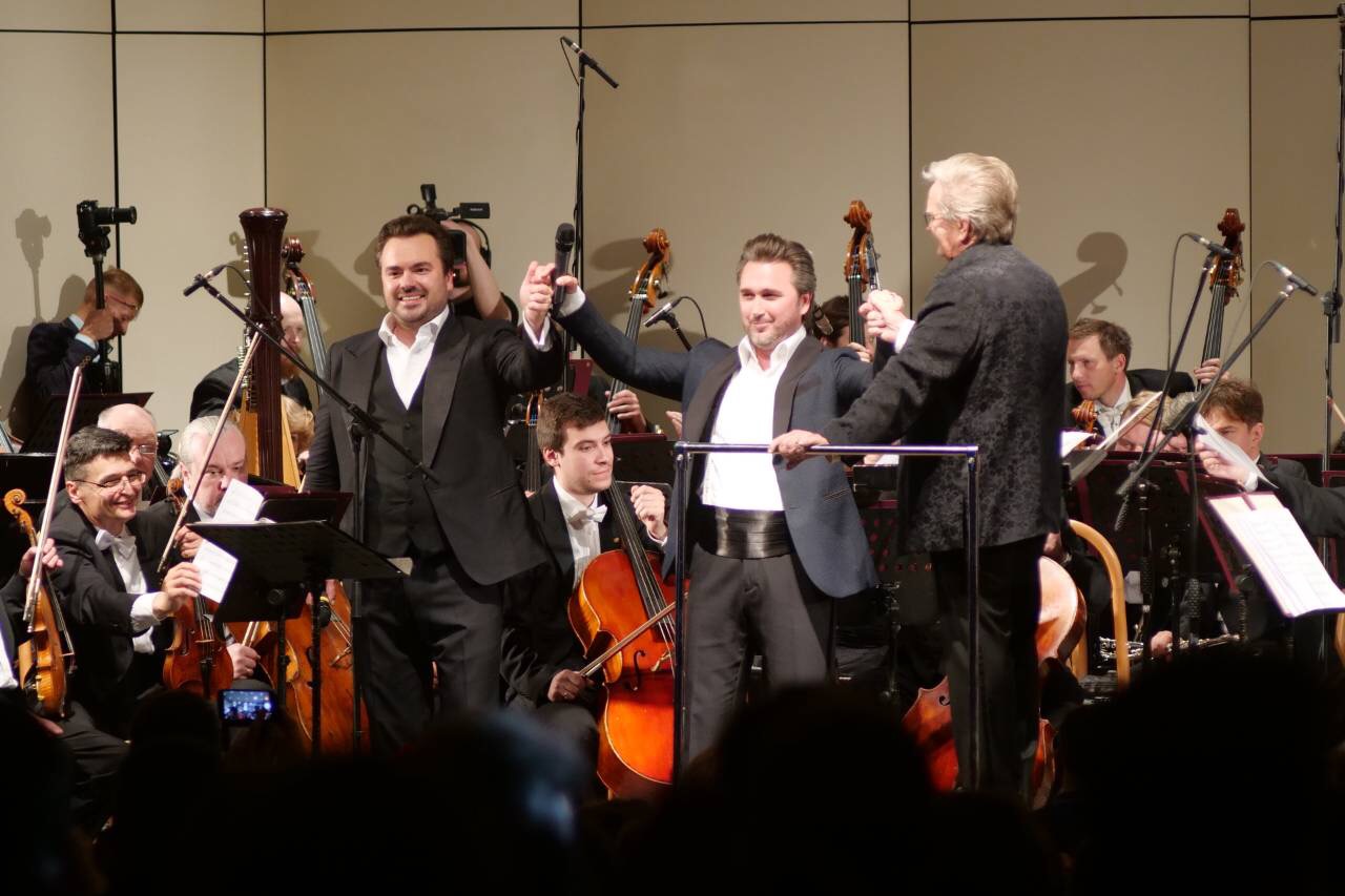 Солисты Василий Ладюк (баритон) и Алексей Татаринцев (тенор) в сопровождении оркестра спели легендарные произведения Давида Тухманова, Александра Пахмутовой, Муслима Магомаева, Матвея Блантера, Марка Фрадкина и других популярных авторов. Впервые в исполнении столь представительных музыкантов прозвучал официальный гимн Пермского края. Перед началом концерта было объявлено, что накануне художественному руководителю и главному дирижёру Большого симфонического оркестра, народному артисту СССР Владимиру Федосееву была присвоена одна из самых главных наград Российской Федерации — Орден «За заслуги перед Отечеством» I степени, сделавшая его полным кавалером ордена.