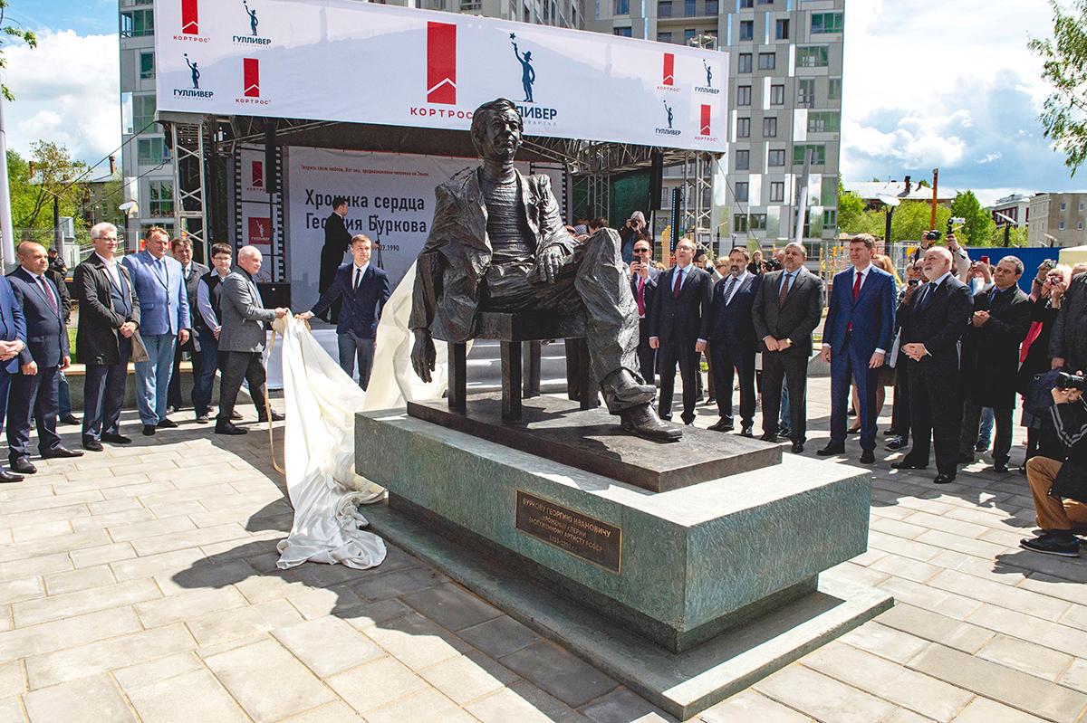 В открытии памятника приняли участие губернатор Пермского края Максим Решетников, председатель наблюдательного совета ГК «Ренова» Виктор Вексельберг, глава Перми Дмитрий Самойлов, родные Георгия Буркова, народная артистка РСФСР Валентина Талызина, а также представители депутатского корпуса, сферы строительства и архитектуры, культуры, жители города.