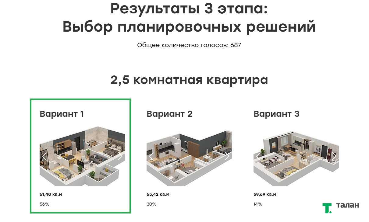 Данные опроса будут учитываться при составлении технического задания на проектирование нового жилого комплекса от компании «Талан». Следите за новыми голосованиями на сайте строимвместе.талан.рф.