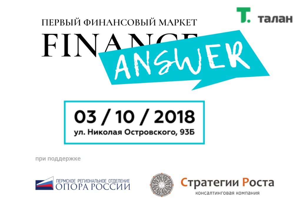 Вы собственник бизнеса или собираетесь им стать? Компания «Талан приглашает Вас стать участником первого в Перми финансового маркета. Организаторы мероприятия: Пермское региональное отделение «ОПОРА РОССИИ» и консалтинговая компания «Стратегия Роста».