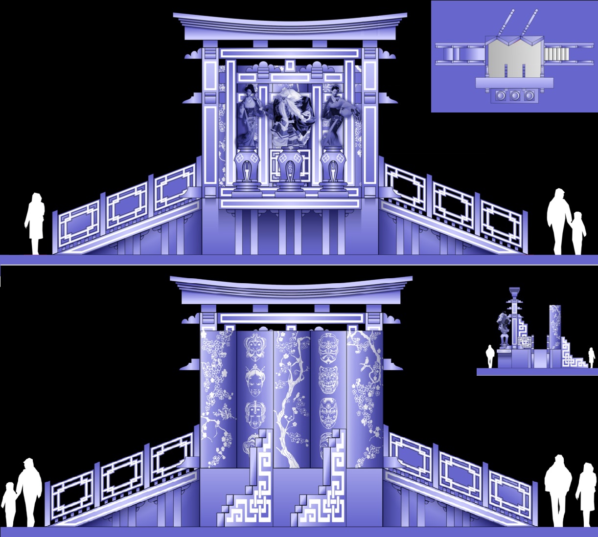 Также по проекту на площади перед Театром-Театром появятся 11 ледовых скульптур, созданных в рамках Кубка России по снежной и ледовой скульптуре «Зимний вернисаж». Темой конкурса станут «Японские мотивы». Участники собираются представить как традиционные образы, навеянные японскими мотивами, так и футуристичные, вдохновлённые уровнем развития современных технологий в Японии.