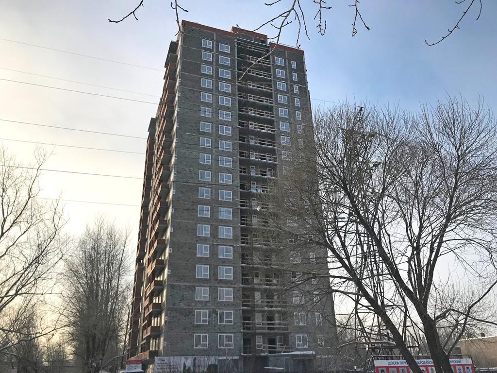 Каркас ЖК «Атмосфера» полностью возведён, завершается остекление оконных проёмов. Ведутся работы по монтажу внешних стен 19-го этажа и внутренних перегородок на 18-м этаже, прокладке вентиляционных воздуховодов.
