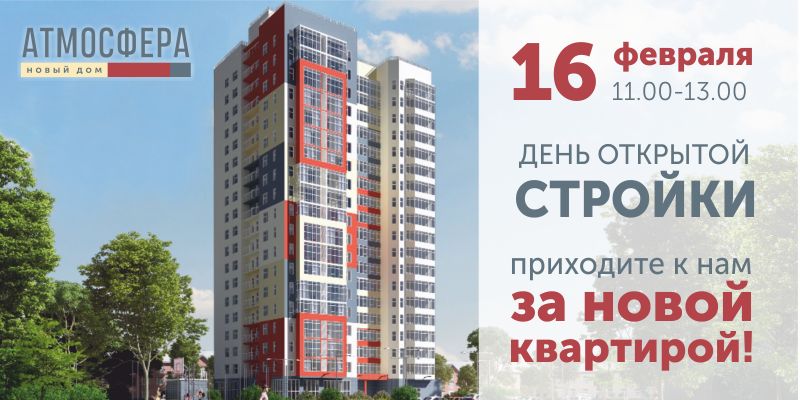 Приходите на день открытой стройки в ЖК «Атмосфера» 16 февраля!