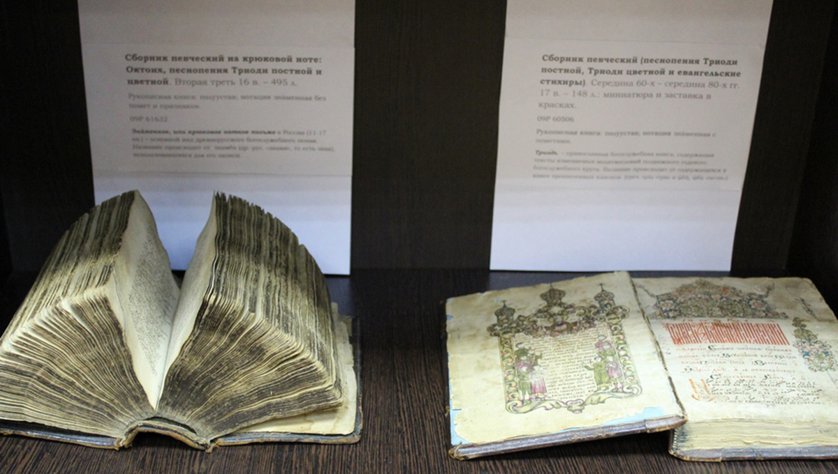 В отделе редких книг библиотеки им. Горького открылась выставка «Православная книга» (0+). В экспозиции — православные печатные и рукописные церковные песнопения конца XVI — начала XX вв. Тут можно увидеть, как выглядело крюковое нотное письмо на примере Октоихов-осмогласников, содержащих песнопения, разделенные на восемь гласов. Представлены ноты песнопений православных прраздников, учебные Фитники крюкового пения и Обиходы.