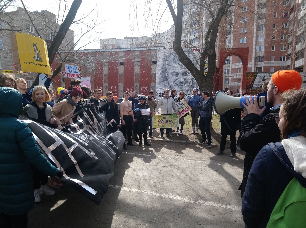 Вчера, 1 мая, в Перми состоялась «монстрация» — массовая художественная акция с шуточными и абсурдными лозунгами и плакатами.