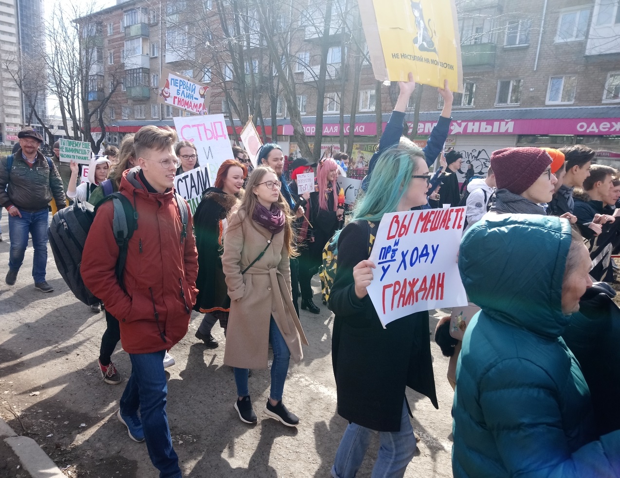 По словам организаторов, в этот раз в акции приняли участие около ста человек. Шествие длилось чуть менее часа: администрация согласовала более длинный, чем обычно, маршрут — 1,8 км. Участники прошли по пешеходной части улицы Крупской от ТЦ «Кит» до улицы Дружбы, выкрикивая надписи на плакатах участников («Мы за однополые драки», «Домашка зло») или сымпровизированные по пути «кричалки» («Делать нам нечего», «Мистер Старк, мне что-то нехорошо»).