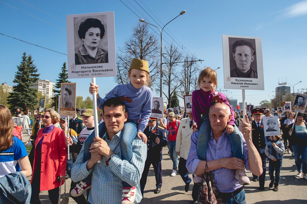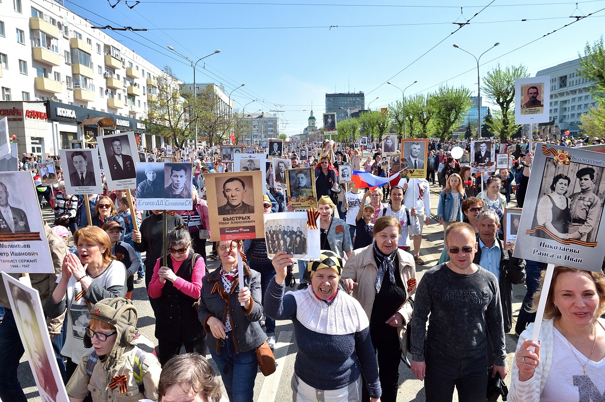 После торжественного прохождения войск на Октябрьскую площадь вышла колонна «Бессмертного полка». Как сообщает пресс-служба администрации Перми, в акции приняли участие 32 тыс. человек.