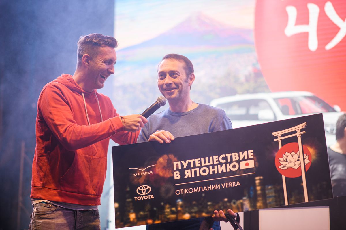 Во время праздника прошёл финал акции «Японское чудо» среди покупателей Toyota, розыгрыш путешествия в Японию. Счастливым обладателем приза стал Роман Сергеев, который в мае 2019 года приобрёл Toyota Camry. «Благодарю VERRA за этот неожиданный и приятный сюрприз к скорому дню рождения! Я клиент компании с 2003 года, и очень доволен этой дружбой», — поделился победитель.