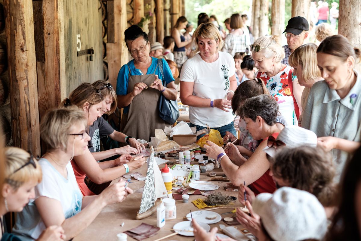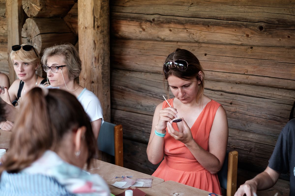 Занятие по душе могли найти все, потому что активности было невообразимо много. Дети мастерили арт-забор, давали вторую жизнь рубашкам из шкафа, воображали себя художниками на летнем пленэре. Серия мастер-классов была организована и для взрослых. Увлечённые, они создавали брошь в виде древнего мха, опиливали бруски дерева, чтобы создать брелок в технике декупаж.