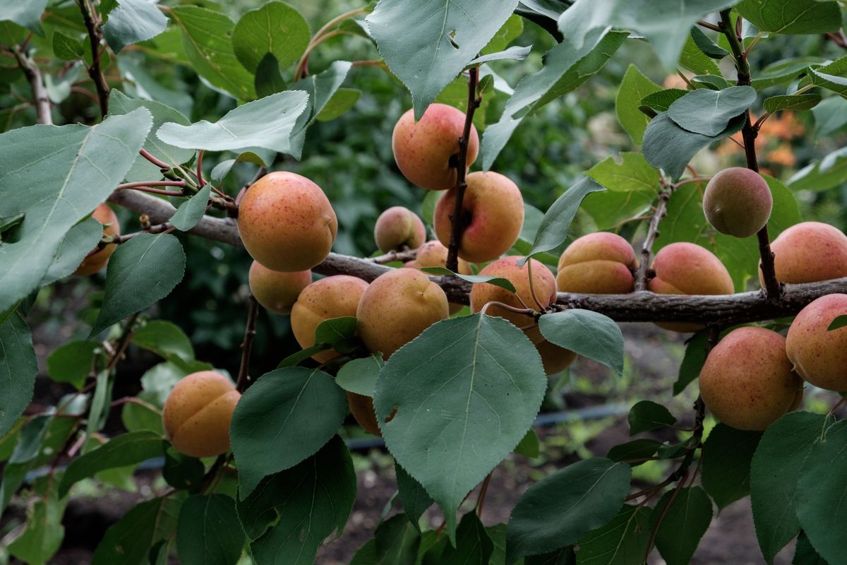 Несмотря на холодное лето, в ботаническом саду впервые созрели абрикосы. Часть урожая абрикосов уже сняли.
