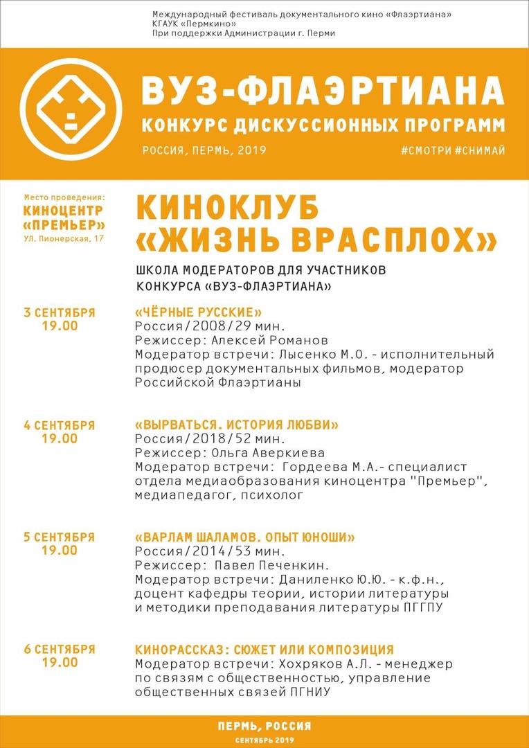 До того как они будут проводить дискуссии на фестивале самостоятельно, эксперты медиаобразования обучат будущих модераторов приёмам проведения интересных обсуждений в киноклубе «Жизнь врасплох». Он начинает работу с 3 сентября.