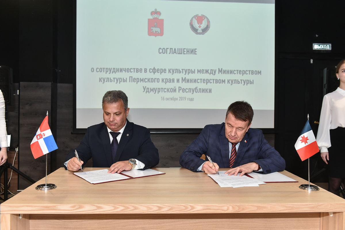 В Музее современного искусства PERMM 16 октября состоялось подписание соглашения о сотрудничестве между министерствами культуры Пермского края и Удмуртии.