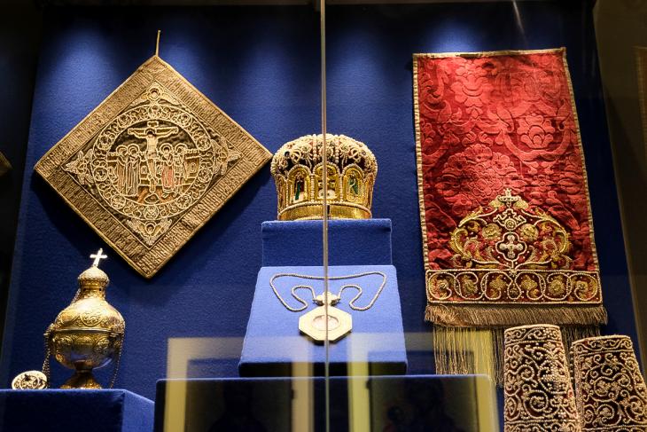 В XVII веке кремлёвские мастерские переживали этап расцвета. С того времени сокровищницы Кремля пополнялись предметами роскоши вплоть до времени реформ Петра Великого. На выставке можно увидеть и посуду, и элементы парадной сбруи, и драгоценное шитьё на итальянских тканях, и сабли с эфесами, усеянными драгоценными камнями, и ружья, украшенные инкрустацией из слоновой кости, и церковную утварь. Большая часть предметов — из запасников Кремля, зрителям, как правило, не доступных.