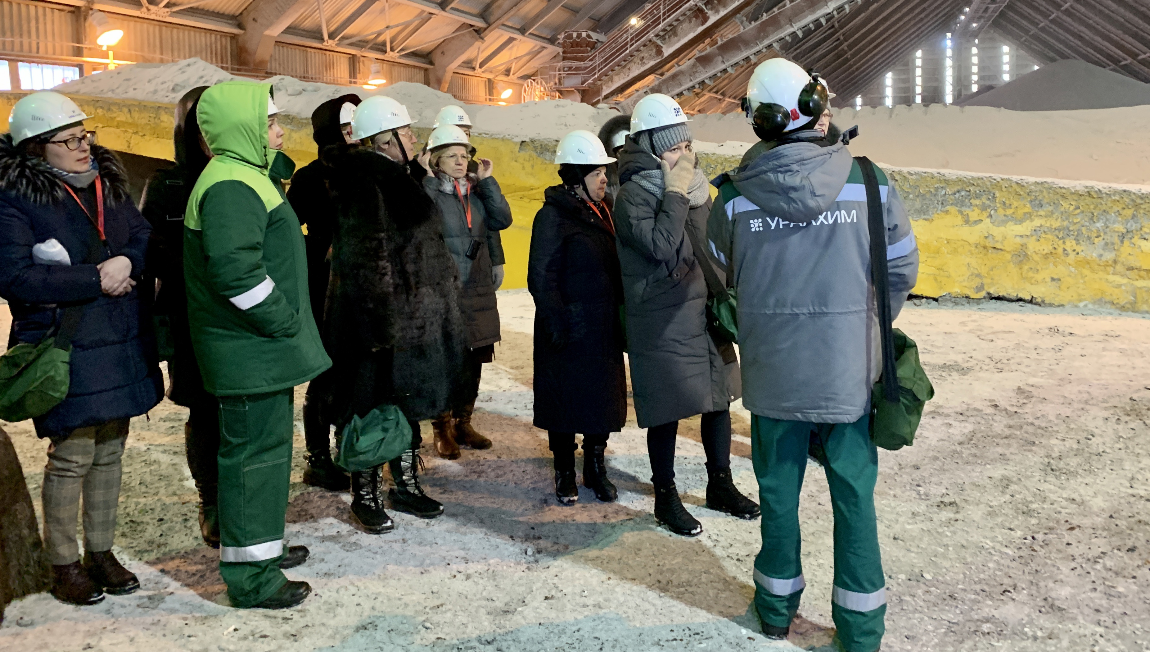 Гости познакомились с одним из основных производств филиала «Азот» — цехом карбамида. Экскурсию провёл заместитель начальника цеха Максим Бородин. Он показал преподавателям-химикам центральный пункт управления производством минерального удобрения и склад готовой продукции.