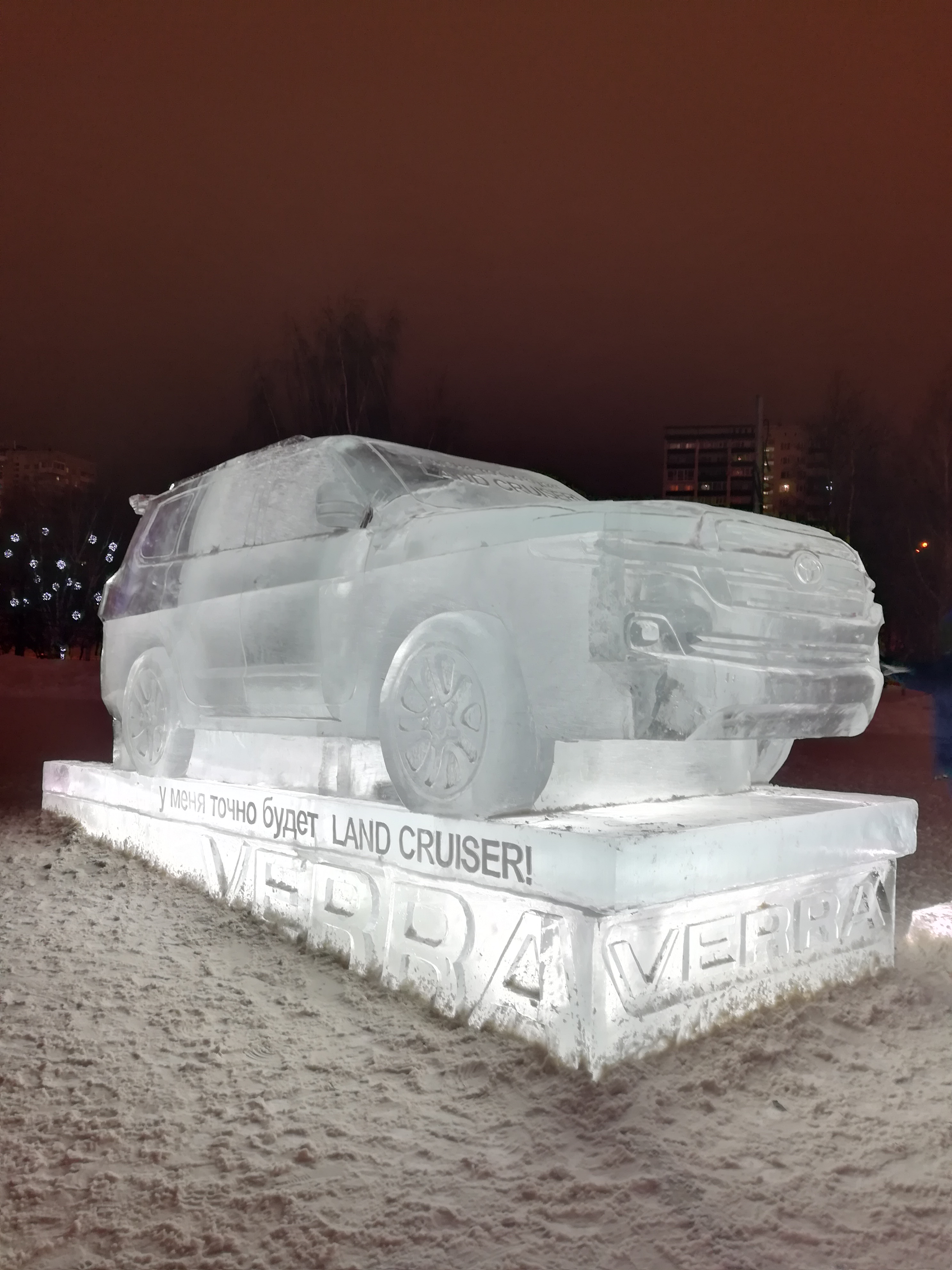 Каждый год компания VERRA радует пермяков красивыми арт-объектами, презентуя на городских площадках скульптуры автомобилей. В 2020 году на городской эспланаде появился новый арт-объект от VERRA — автомобиль Toyota Land Cruiser 200 изо льда. Над его созданием работала целая команда во главе с ведущими скульптурами России. Ледяной внедорожник пользуется огромной популярностью у жителей города Перми, с ним фотографируются и дети и взрослые.