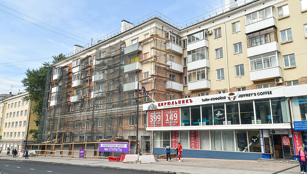 К 300-летию Перми в городе началось комплексное благоустройство Комсомольского проспекта. Работы включают поэтапную реконструкцию бульвара и капитальный ремонт домов с обновлением облицовки, кровли, окон, балконов и дверей.