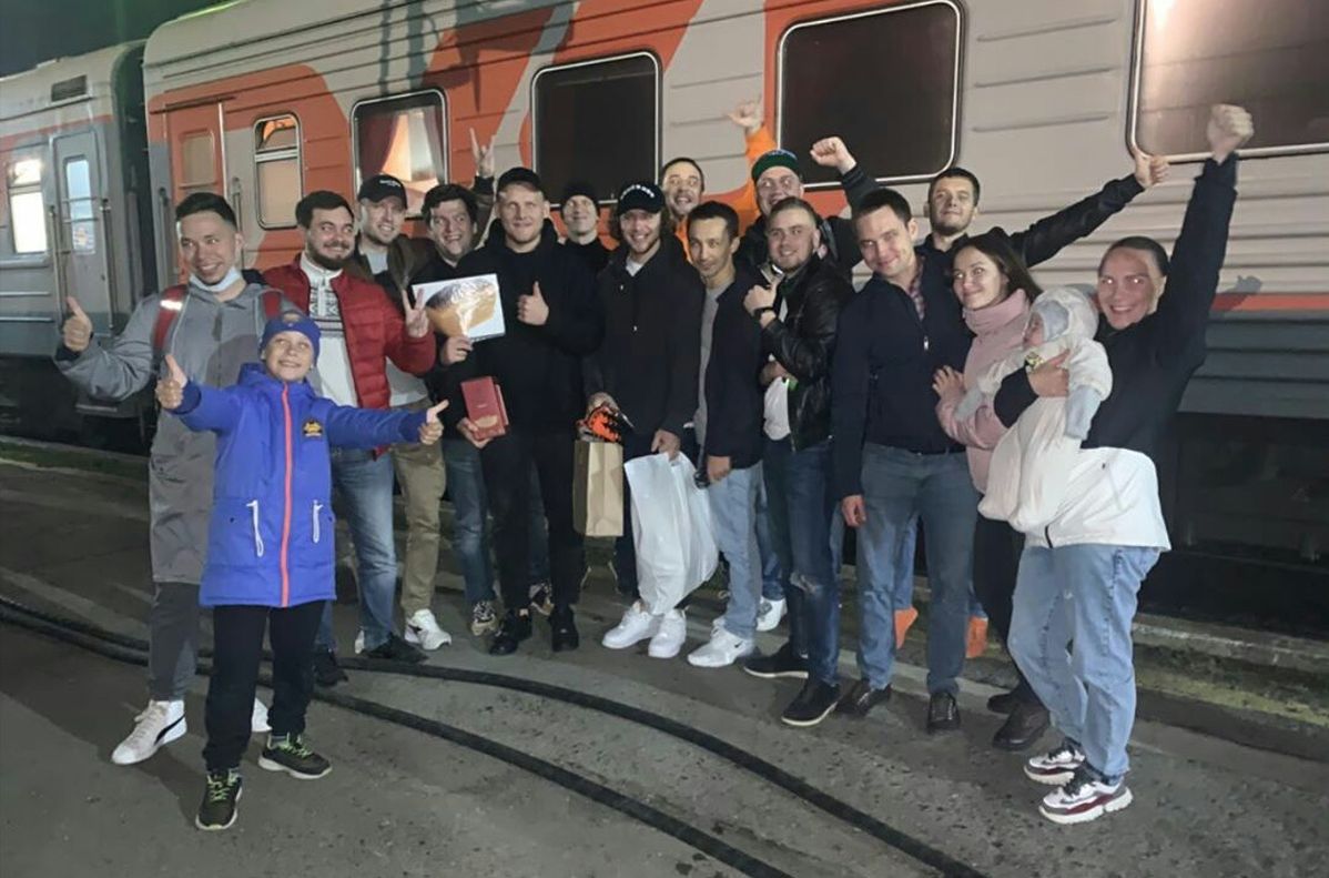Почти на каждой длинной остановке состава звезду НХЛ встречали персональные фанаты. Вот и в Перми на встречу с хоккеистом пришли порядка 20 внимательных любителей хоккея разных возрастов, которые отследили местоположение поезда и номер вагона игрока в соцсетях. Они подарили ему вкусные подарки, а также сувениры, один из которых — шарф пермского ХК «Молот-Прикамье». Сам Артемий Панарин, в свою очередь, раздал всем желающим автографы и не отказал в памятных фотографиях.