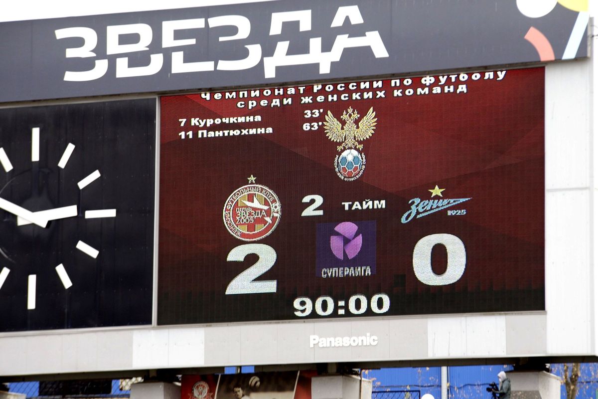 До конца матча опять могла отличиться Надежда Ильиных, но форвард вновь попала в перекладину ворот Беляевой. Как итог — 2:0, уверенная победа «Звезды-2005». Команда Елены Сусловой вернулась на третье место в турнирной таблице Суперлиги, а Ирина Зварич провела пятый сухой матч в турнире. В активе «звёздочек» четыре победы, четыре ничьих и одно поражение в девяти играх, а также 16 очков. До второго места, которое занимает ЖФК «Локомотив» (Москва) — три очка.