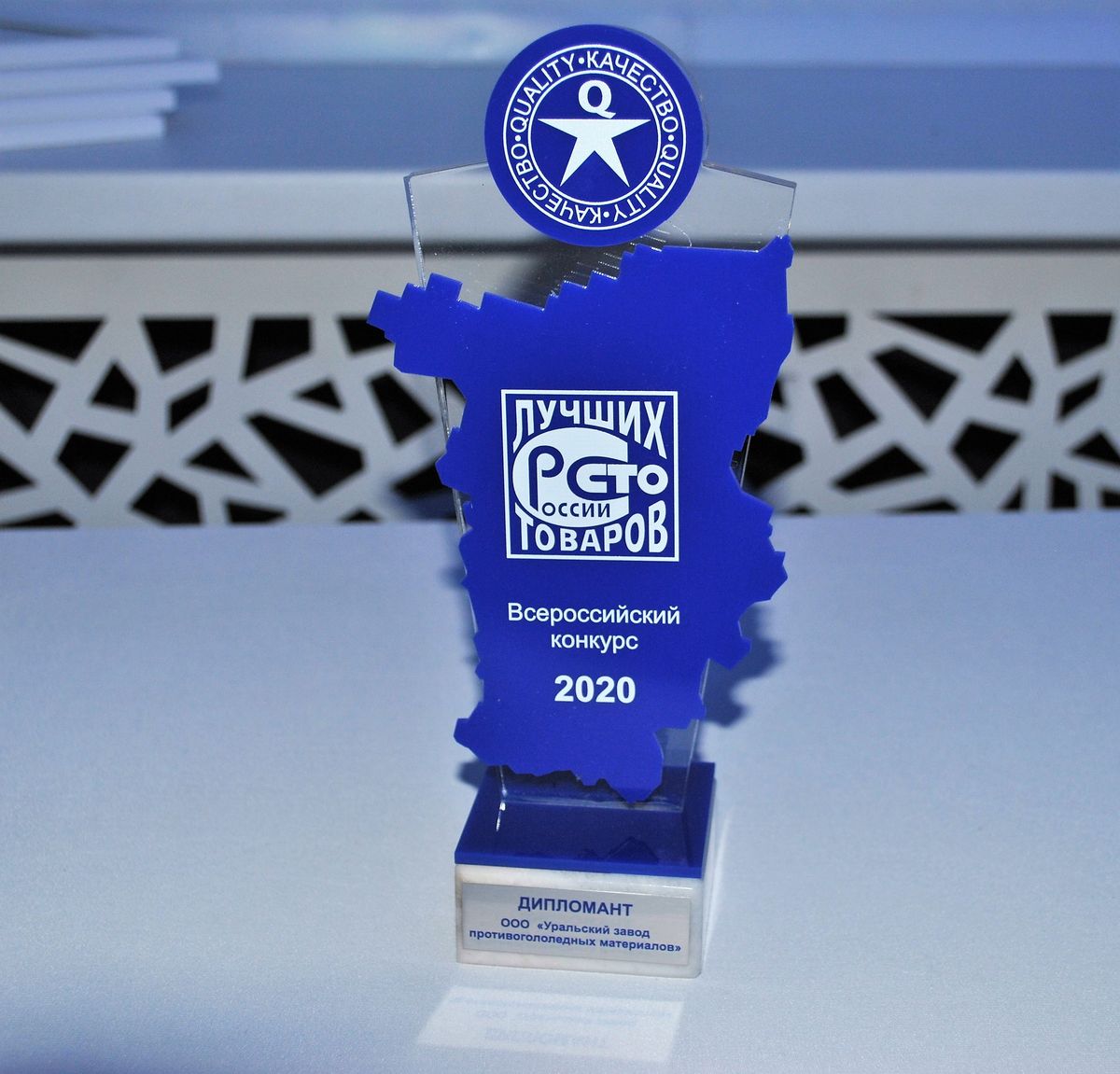 По результатам конкурса «100 лучших товаров России» эксперты Росстандарта оценили качество тысяч товаров. Дипломантами конкурса признаны продукты «Бионорд» Уральского завода противогололёдных материалов — «Универсальный», «Тротуары», «Мосты» (твёрдый), шампунь и средство с дезинфицирующими добавками.