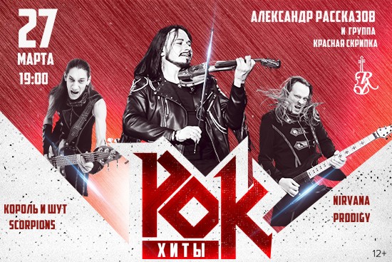 27 марта в 19:00 частная филармония «Триумф» приглашает на концерт «Rock хиты» (12+) Александра Рассказова и группы «Красная Скрипка».