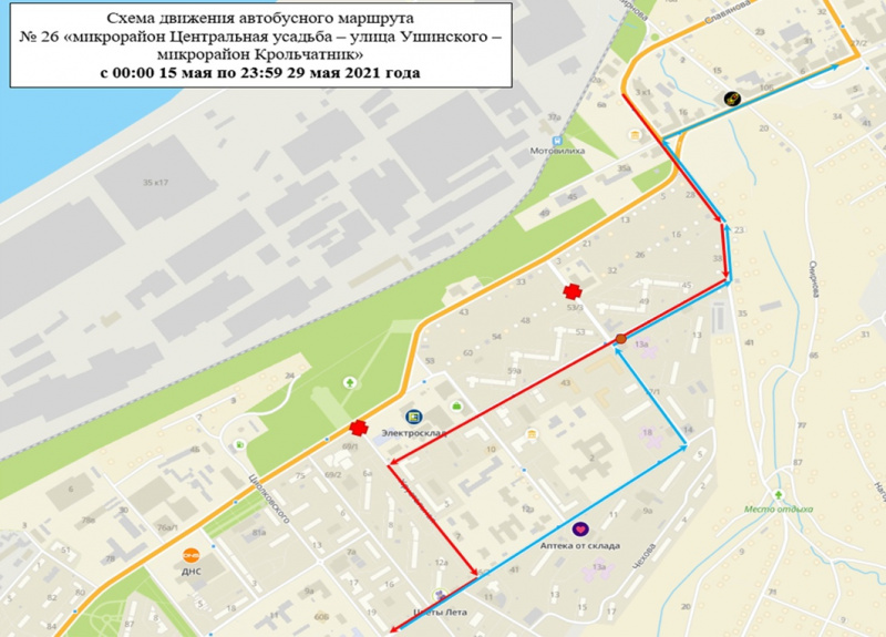 Согласно изменениям маршрут №26 от ул. Славянова будет проезжать по ул. Лифанова, ул. Анри Барбюса, ул. Хрустальной, ул. КИМ, затем — без изменений. В обратном направлении от ул. КИМ маршрут будет идти по ул. Ивановской, ул. Анри Барбюса, ул. Лифанова, ул. 1905 года, далее маршрут остаётся прежним. Посадка и высадка пассажиров будут осуществляться на временных остановочных пунктах «Улица Ивановская, 17а» (на ул. Анри Барбюса) в прямом направлении, «Улица Анри Барбюса, 27» в обратном направлении, а также в любом не запрещённом правилами дорожного движения месте по маршруту следования.