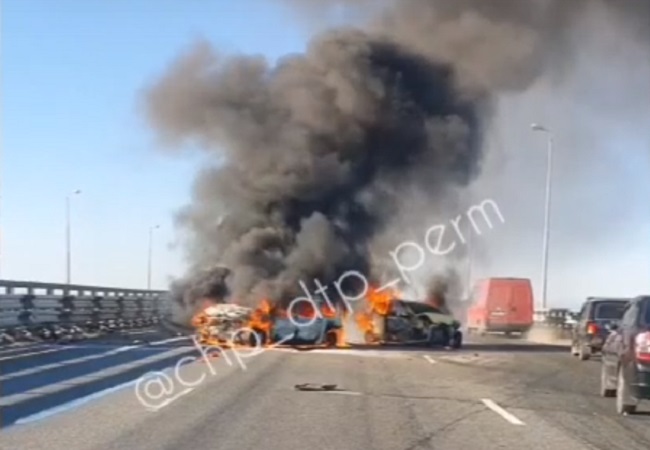 Во вторник, 13 июля, около 7 часов утра на Красавинском мосту в Перми произошло серьёзное дорожно-транспортное происшествие. На полосе в сторону центра города столкнулись и загорелись два легковых автомобиля, об этом сообщает «Рифей».