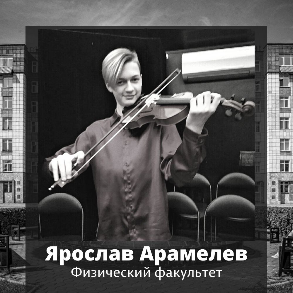 Ярослав Арамелев — студент второго курса направления «Физика». Увлекался музыкой, закончил музыкальную школу по классу скрипки и занимался спортивной акробатикой, получил множество наград. Также он увлекался робототехникой, мечтал создать робота по уборке с крыш наледи и сосулек. Даже успел собрать его прототип. Ярославу было 19 лет.