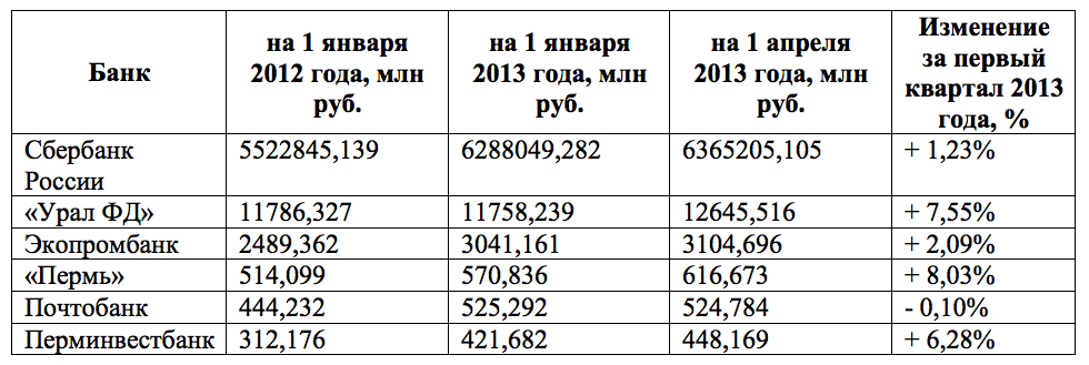 Сложившаяся на рынке банковских вкладов ситуация заметно отличается от той, которая была в первом полугодии 2012 года. Тогда три из пяти пермских банков были вынуждены констатировать отток вкладчиков. С ним столкнулись «Урал ФД», Экопромбанк и Почтобанк. По итогам отдельных месяцев того периода Сбербанк также показывал отрицательную динамику вкладов.