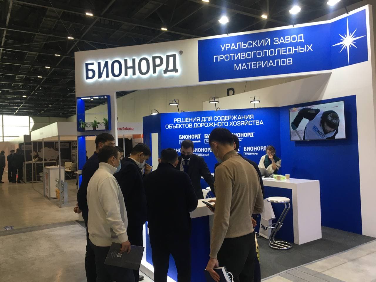 «УЗПМ» представил на выставке продукты, предназначенные для межрегиональных и муниципальных дорог и мостов: «Бионорд Универсал», «Бионорд Мосты», «Бионорд Шампунь» и новинку — решение для пылеподавления — «Бионорд Антипыль». Разработка была успешно протестирована этим летом предприятиями горнодобывающей промышленности, а также на дорогах Казани и Новороссийска, а с осени применяется в Новосибирске и городах Северного Кавказа.