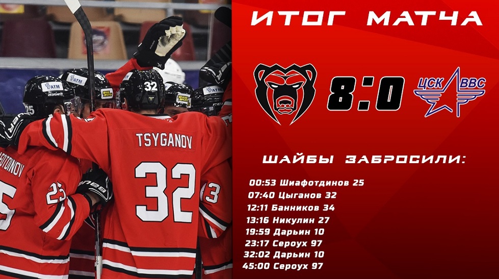 Первые пять шайб побывали в воротах самарской команды уже в первом периоде. Авторами голов стали Камиль Шиафотдинов, Денис Цыганов, Матвей Банников, Степан Никулин и Александр Дарьин. Вновь Александр Дарьин, а также Даниил Сероух забросили шайбы уже после перерыва. Окончательный результат встречи оформил Даниил Сероух под занавес матча. Итог — 8:0.