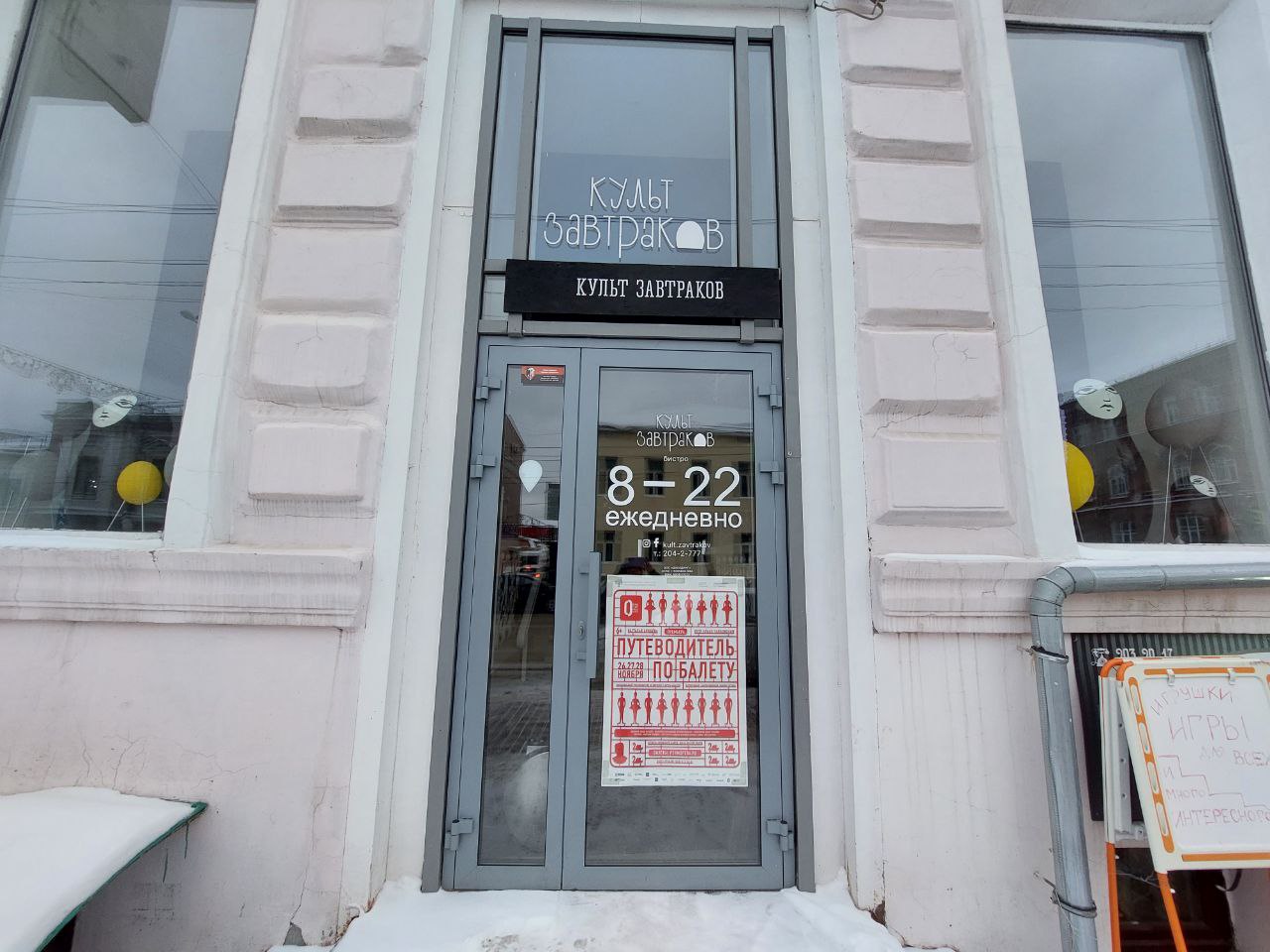 Кафе-бистро «Культ завтраков» на ул. Сибирской, 8 в Перми вновь открылось. «Проект «Культ завтраков» продолжает работу, — рассказал консультант бистро Борис Кулинский. — Поменялась команда поваров, небольшие изменения произошли в интерьере».