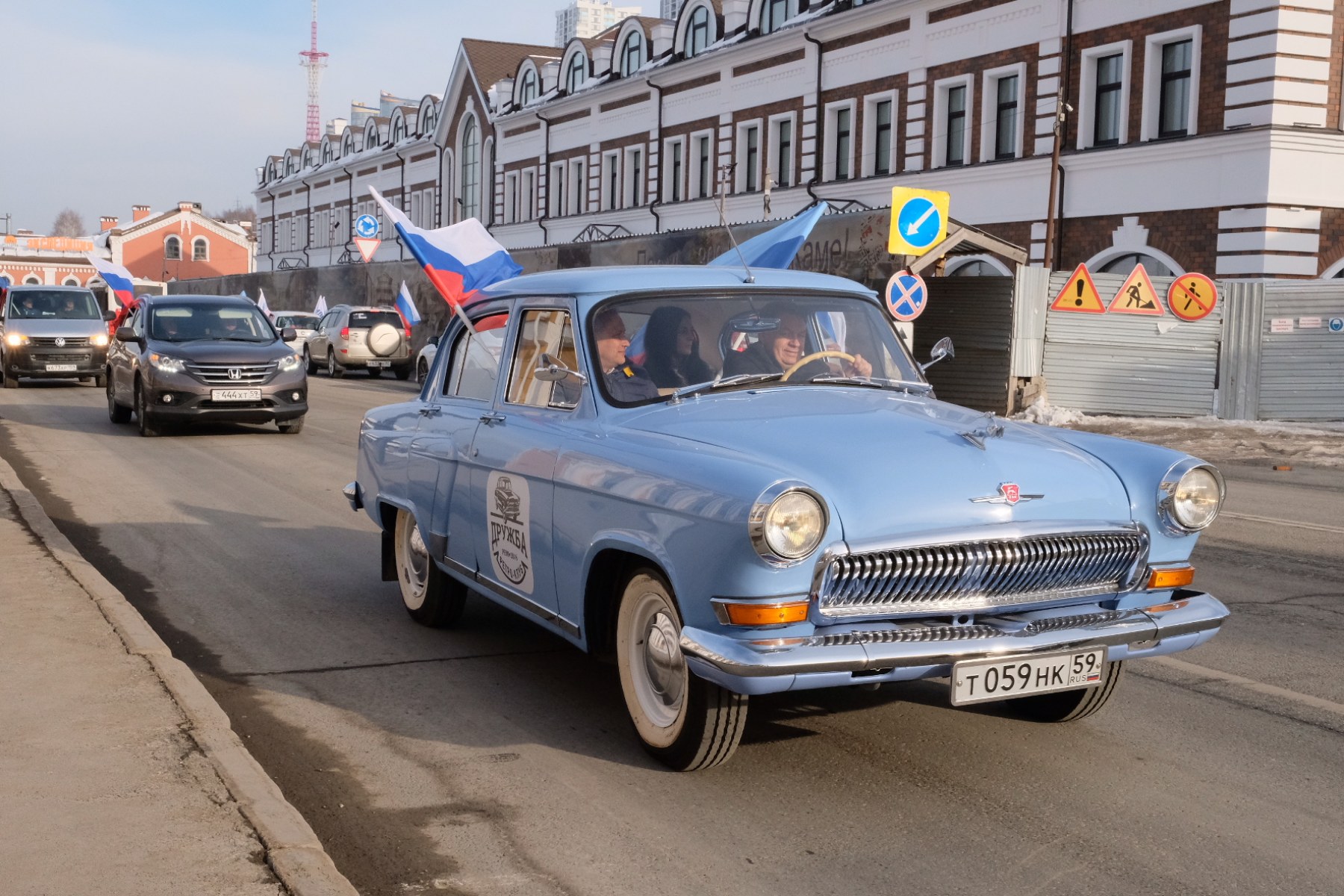 Автоколонна стартовала в 15:00 от сквера им. Дзержинского, далее проехала по центру Перми — улице Ленина и Комсомольскому проспекту. Финальной точкой стала площадь около исторического парка «Россия — моя история» на набережной Камы.